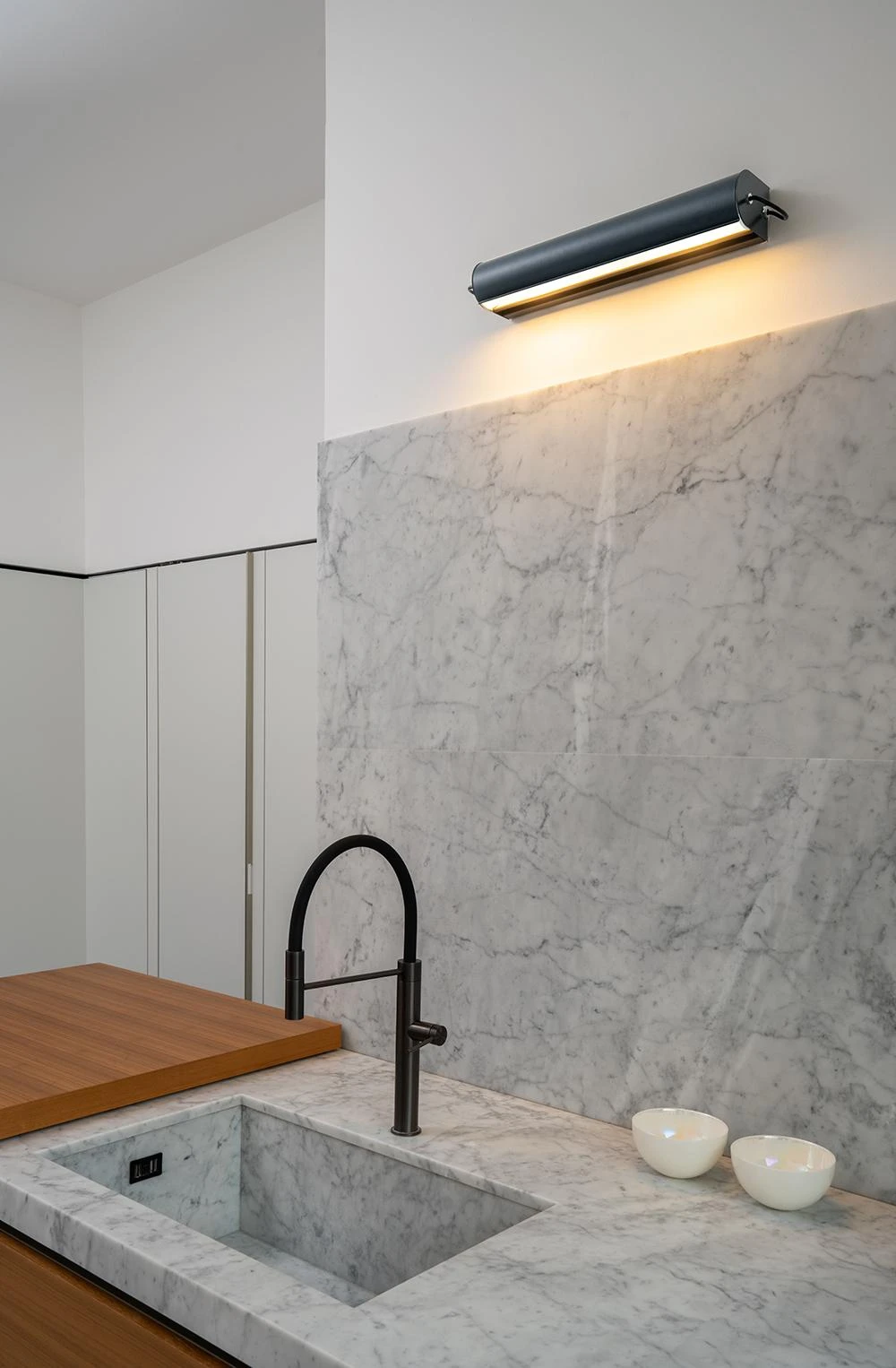 Imaginée dans les années 1930 pour son chalet, l’applique cylindrique longue signée Charlotte Perriand est proposée en réédition par la marque italienne Nemo Lighting. Lampe murale en aluminium utilisable horizontalement ou verticalement, elle s’adapte à tous les décors et tous les styles sans jamais perdre sa personnalité. Une lampe design intemporelle et minimaliste à haut potentiel.