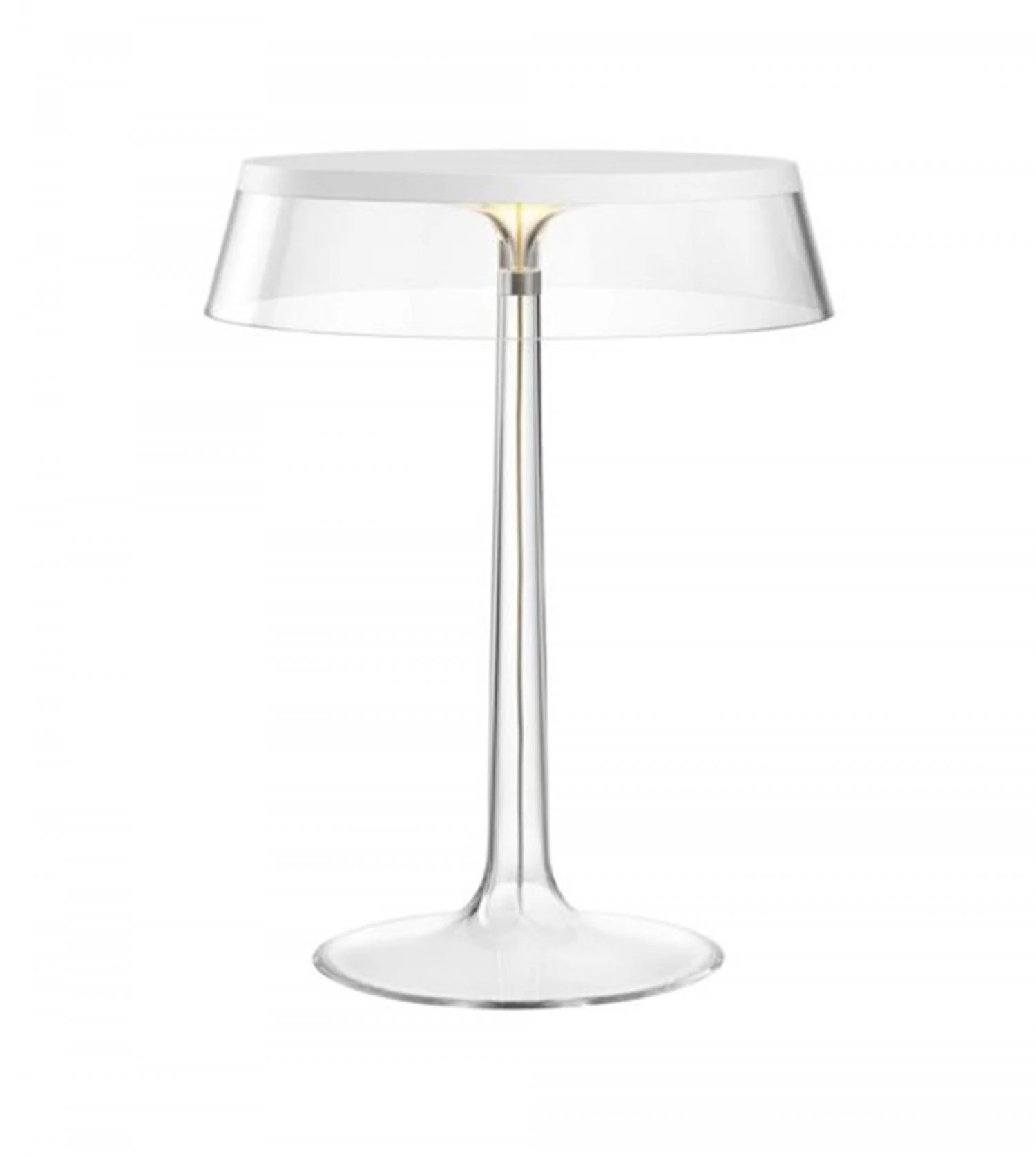 Plus qu’un luminaire design, la lampe de table Bon Jour imaginée par Philippe Starck à la demande de l’éditeur italien Flos représente l’essence d’une époque teintée de dématérialisation, celle des objets mais aussi celle de notre relation à l’autre. Lampe à poser totalement novatrice, ancrée dans un 21ème siècle aussi fascinant que déroutant, elle joue sur la transparence de la matière (comme la lampe à poser Ktribe en vente chez Blou) pour mieux révéler l’essence de la lumière que l’on module selon ses envies. Fabriquée en PMMA transparent moulé par injection, la lampe de table Bon Jour de la marque Flos propose un éclairage optimal dans toutes les situations grâce à sa technologie Edge Lighting et son variateur d’intensité qui permet de dessiner une ambiance lumineuse sur mesure. Avec son corps transparent et sa silhouette fine, la lampe de table à lumière diffuse Bon Jour se fond dans tous les décors sans jamais se départir de son incroyable personnalité. Déclinée en plusieurs versions avec abat-jour blanc, chrome ou cuivre, la lampe à poser Bon Jour, chic et graphique, fait vivre la lumière, l’incarne avec plus ou moins d’intensité devenant selon l’envie évanescente, organique ou vibrante. Transparente de la base au diffuseur abritant la source lumineuse, la lampe de table Bon Jour reprend des couleurs et de la vie grâce au dimmer permettant de moduler l’intensité du halo de 10 à 100%. Résolument contemporaine dans son esprit et dans l’utilisation d’innovations technologiques, cette lampe à poser design possède l’élégance intemporelle des pièces destinées à devenir iconiques qui réveillent en beauté tous styles de décors, des plus sages et classiques aux plus audacieux. Lampe à poser sur une table, une enfilade, un rebord de cheminée, destinée à dessiner l’ambiance d’un lieu ou d’un moment, sa fonction dépasse celle du simple objet lumineux, de la solution d’éclairage pratique et porte en elle l’essence du design contemporain, l’esprit d’une époque dématérialisée que l’on souhaiterait paradoxalement voir s’incarner. Pièce décorative et luminaire design d’exception, la lampe à poser Bon Jour conçue par Philippe Starck pour la maison Flos permet de mesurer à quel point le quotidien influence nos vies. Pour le pire et pour le meilleur.