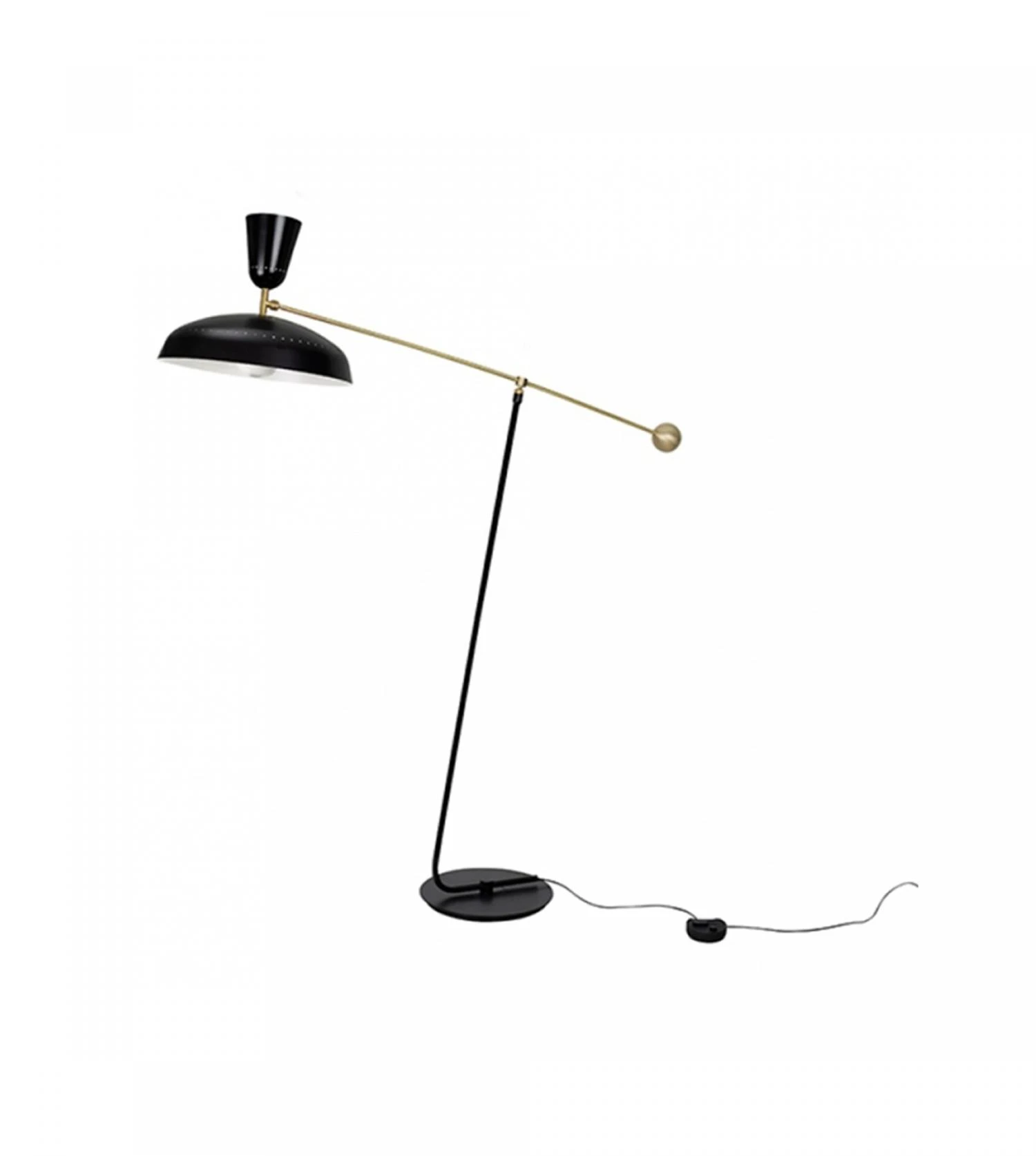 Matériaux : bras laiton verni brossé, mât et abat-jour métal laqué