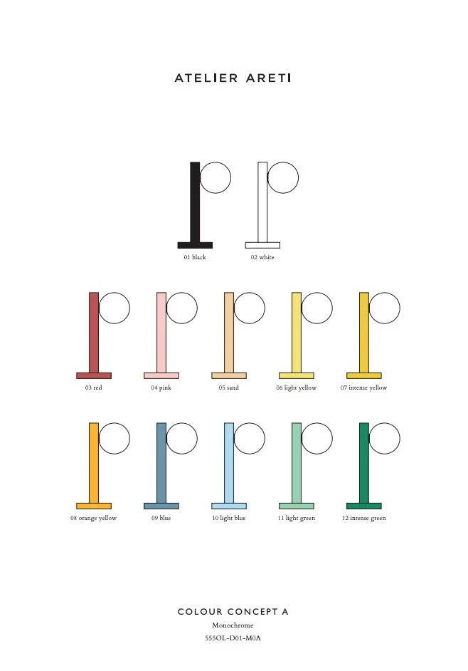 Petit luminaire monochrome composé d’éléments géométriques, la lampe de table tube with globes and cones Concept colour A de la marque Atelier Areti séduit par son efficacité, sa présence graphique et son haut potentiel décoratif. Une création design signée Gwendolyn et Guillane Kerschbaumer qui donne de la personnalité à un espace de vie ou de travail.