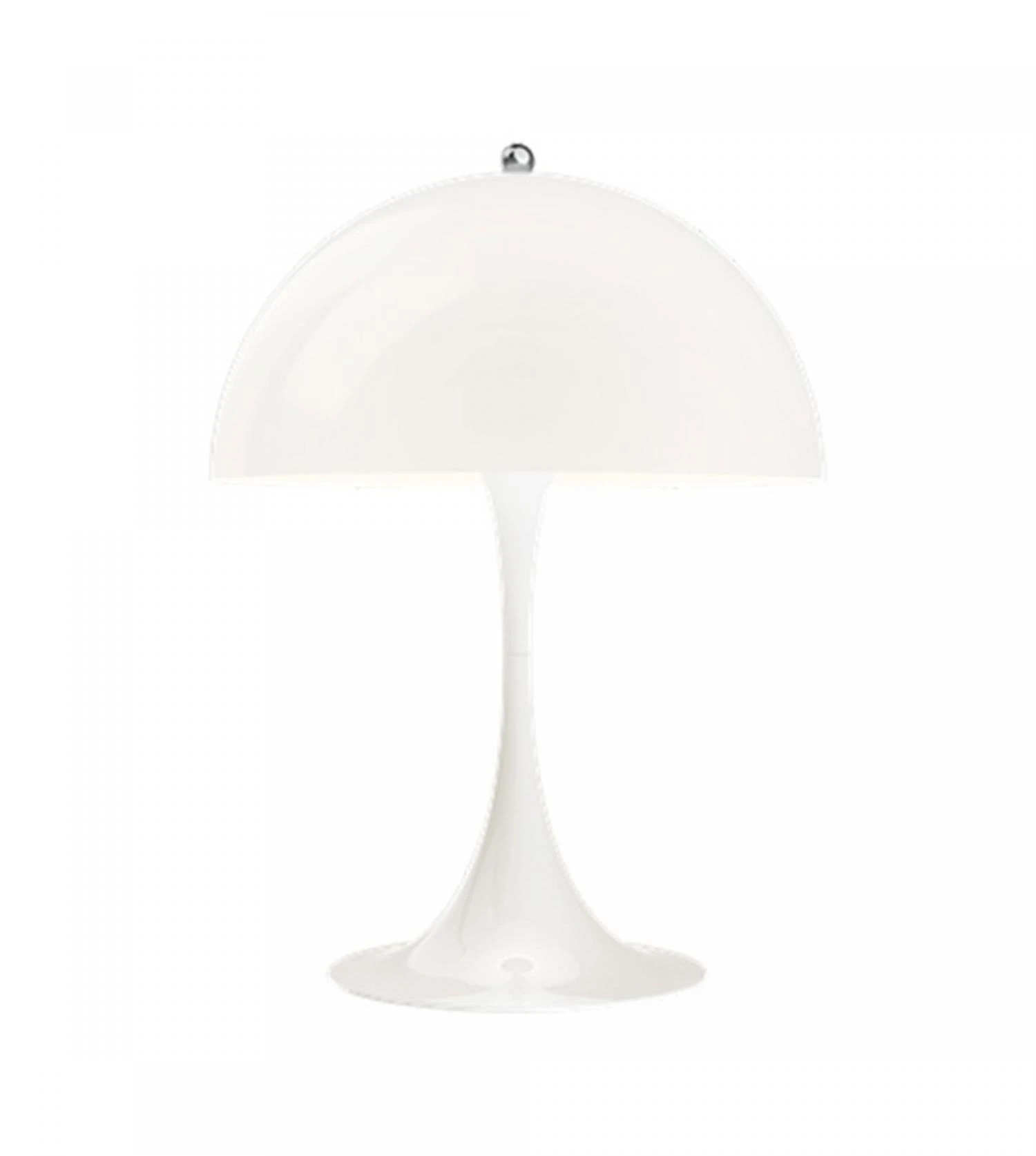 Depuis 1971 la Panthella family à laquelle appartient la lampe de table Panthella 320 éditée par Louis Poulsen Lighting met l’ambiance à la maison en journée et en soirée. Lampe design iconique imaginée par le grand Verner Panton, théoricien de la lumière obnubilé par la courbe, la lampe Panthella a envouté des générations d’amoureux de décoration intérieure avec sa silhouette en forme de champignon et son pied en trompette. Loin de s’en tenir uniquement à son incroyable plastique la lampe de table Panthella est également une solution d’éclairage performante qui a le bon goût de ne pas être éblouissante. Ambiance feutrée et douceur sont au rendez-vous pour cette lampe de table design située à mi-chemin entre la Panthella mini et la Panthella originale (en vente chez Blou) qui offre un éclairage diffus grâce à sa transparence (pour la version acrylique opalisée) et joue habilement avec le spectre lumineux par une double réflexion (vers le bas grâce à l’abat-jour et inversement grâce au pied du luminaire). Cette version Panthella de 320 mm de hauteur habillera de lumière toutes les pièces de la maison de l’entrée à la chambre à coucher en passant par le salon. Installée seule sur une table, un buffet, une cheminée, ou en bande dans une élégante et envoutante constellation, la lampe de table Panthella 320 de la maison Louis Poulsen réveille les intérieurs endormis par sa personnalité charismatique qui en fait un irrésistible accessoire décoratif ainsi que par ses remarquables capacités d’éclairage. Luminaire iconique d’inspiration futuriste la Panthella table light a su transcender les styles et les époques au point de devenir intemporelle et de pouvoir intégrer à la fois les ambiances décoratives classiques et les lieux tendance. L’incroyable popularité de la lampe de table Panthella et de ses déclinaisons (mini, portable, lampadaire, etc.) n’a en rien atténué le charisme de ce luminaire design incontournable. Disponible en plusieurs déclinaisons (voir dans caractéristiques) la lampe à poser Panthella 320 imaginée par Verner Panton incarne le génie d’un designer et la volonté d’un éditeur désireux de sculpter la lumière, de la réinventer. Incontournable, irremplaçable la lampe Panthella Louis Poulsen brille de mille feux sur la scène design internationale depuis ses débuts. Sans jamais éblouir bien évidemment.