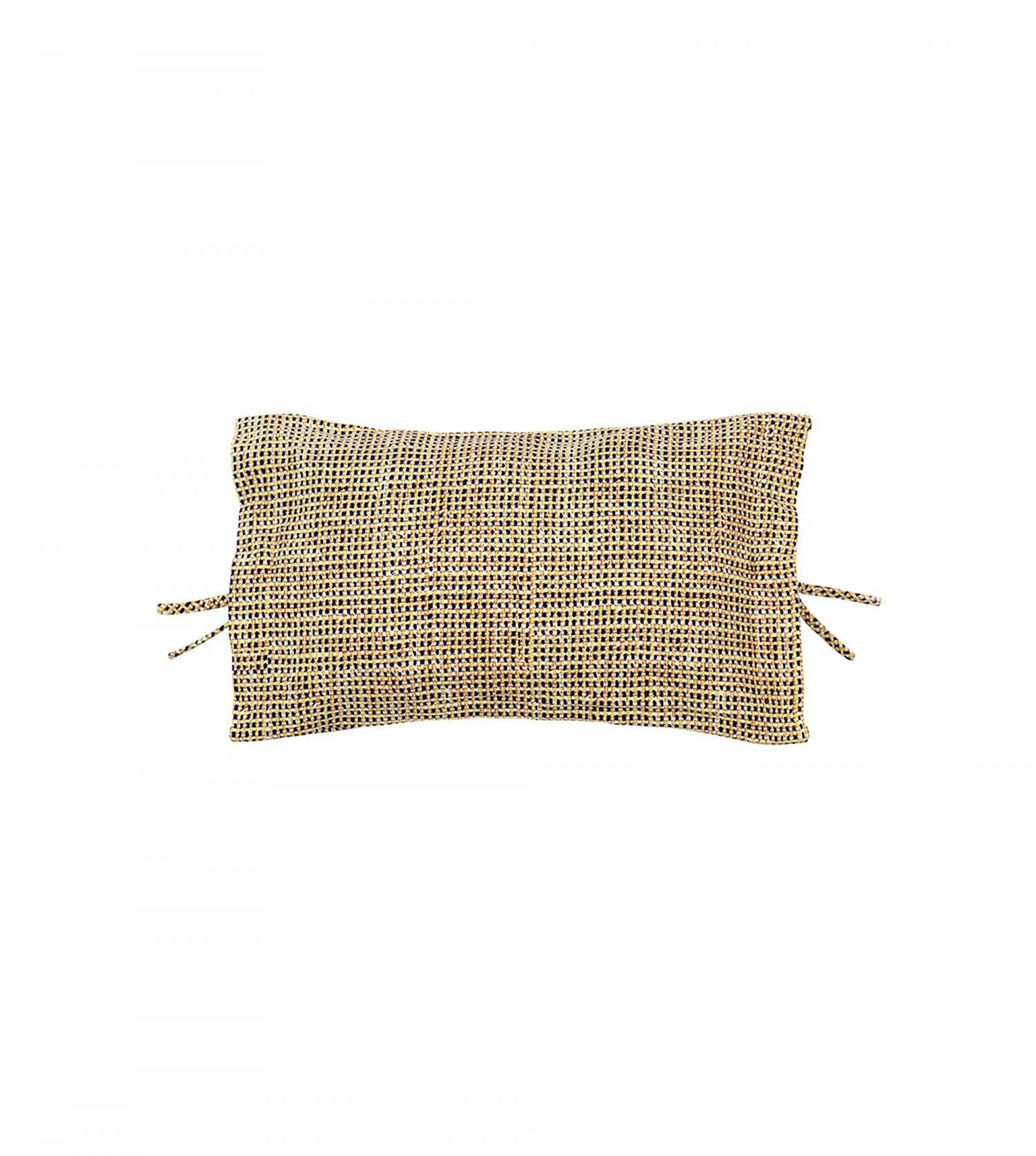 Un coussin à l’imprimé trompe l’oeil qui imite un tissu en relief.