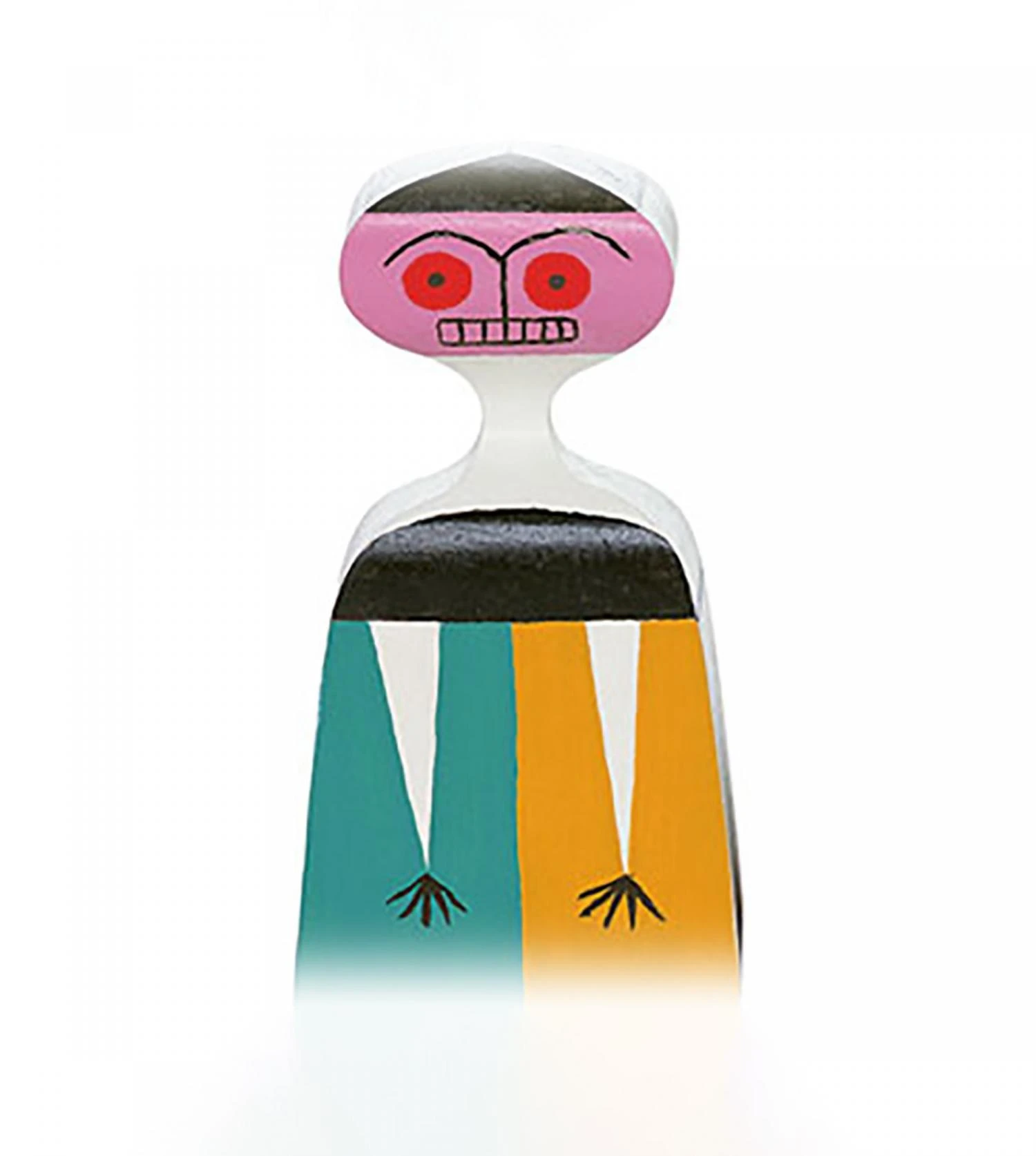 L’énigmatique poupée en bois n°3 éditée par Vitra appartient à une collection de wooden dolls imaginée en 1952 par le designer américain Alexander Girard pour la décoration intérieure de sa propre maison de Santa Fe. Désormais proposée au grand public, cette gamme de figurines en sapin massif fabriquées et peintes à la main fascine par son incroyable modernité et sa créativité. Connu pour ses motifs textiles graphiques et colorés, Alexander Girard a décliné son amour pour les arts populaires dans de nombreuses collections toujours actuelles. La poupée en bois n°3 Vitra, à mi-chemin entre la sculpture, le jouet et l’accessoire décoratif s’intègre dans tous les univers, des plus classiques aux plus tendance grâce à son élégance graphique et sa fantaisie poétique. Associée à d’autres modèles de la collection comme les wooden dolls n°17 ou n°13 (en vente chez Blou) ou utilisée seule, elle donne vie aux décors grâce à son côté multicolore et ludique. Posée sur une enfilade, un bureau, un buffet, une bibliothèque ou une étagère dans la chambre des enfants, la poupée en bois n°3 Vitra apporte une touche graphique à un décor et donne de la personnalité à un espace dédié au travail ou à la détente. Livrée dans un coffret cadeau en bois, elle a toutes les qualités d’un bien précieux qu’on aura plaisir à transmettre aux générations futures. Une poupée en bois design pour tous les âges, idéale pour commencer une collection.