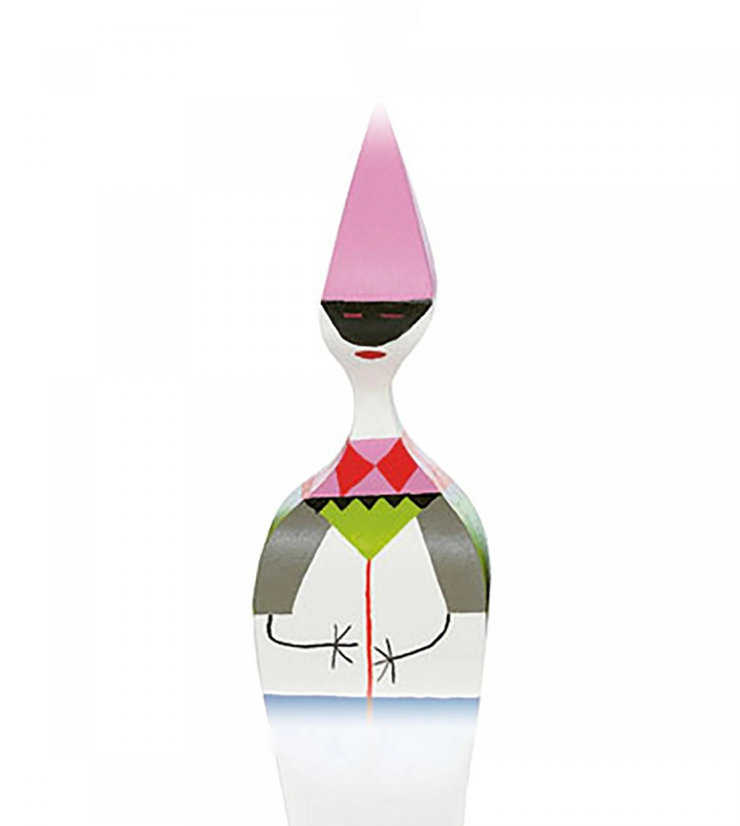 Poupée en sapin massif sculptée et peinte à la main, cette wooden doll avec chapeau pointu et masque sur les yeux est aussi colorée et mystérieuses que les autres pièces de la collection signée Alexander Girard et éditée par Vitra. Accessoire décoratif, sculpture design, jouet : la wooden doll n°6 est la somme de toutes ces fonctions et plus encore. Destinée à l’origine à la décoration intérieure de la résidence du designer et scénographe américain Alexander Girard, cette poupée design est depuis destinée au grand public. Seule ou accompagnée d’un autre modèle de la gamme comme la wooden doll n°11 bicéphale ou la féline wooden doll cat (en vente chez Blou), elle se met en scène au quotidien, dans toutes les pièces de la maison, de l’entrée à la chambre des enfants en passant par le salon, la salle à manger et le bureau. Placée sur une enfilade, un buffet, le rebord d’une cheminée ou à même le sol elle réveille la décoration intérieure d’une pièce par son élégance graphique, ses motifs à la fois géométriques et poétiques et son côté fantaisiste. Imaginée par Alexander Girard en 1952, la collection de wooden dolls est le fruit d’influences multiples, notamment celle des arts populaires sud-américains et asiatiques, véritable passion du designer. Les étapes réalisées à la main (sculpture, peinture) garantissent à chacune des poupées en bois Vitra une authenticité qui séduira les amateurs de décoration intérieure et de design à la recherche de pièces originales. Livrée dans un coffret cadeau en bois, la wooden doll n°6 s’offre et s’apprécie sans modération